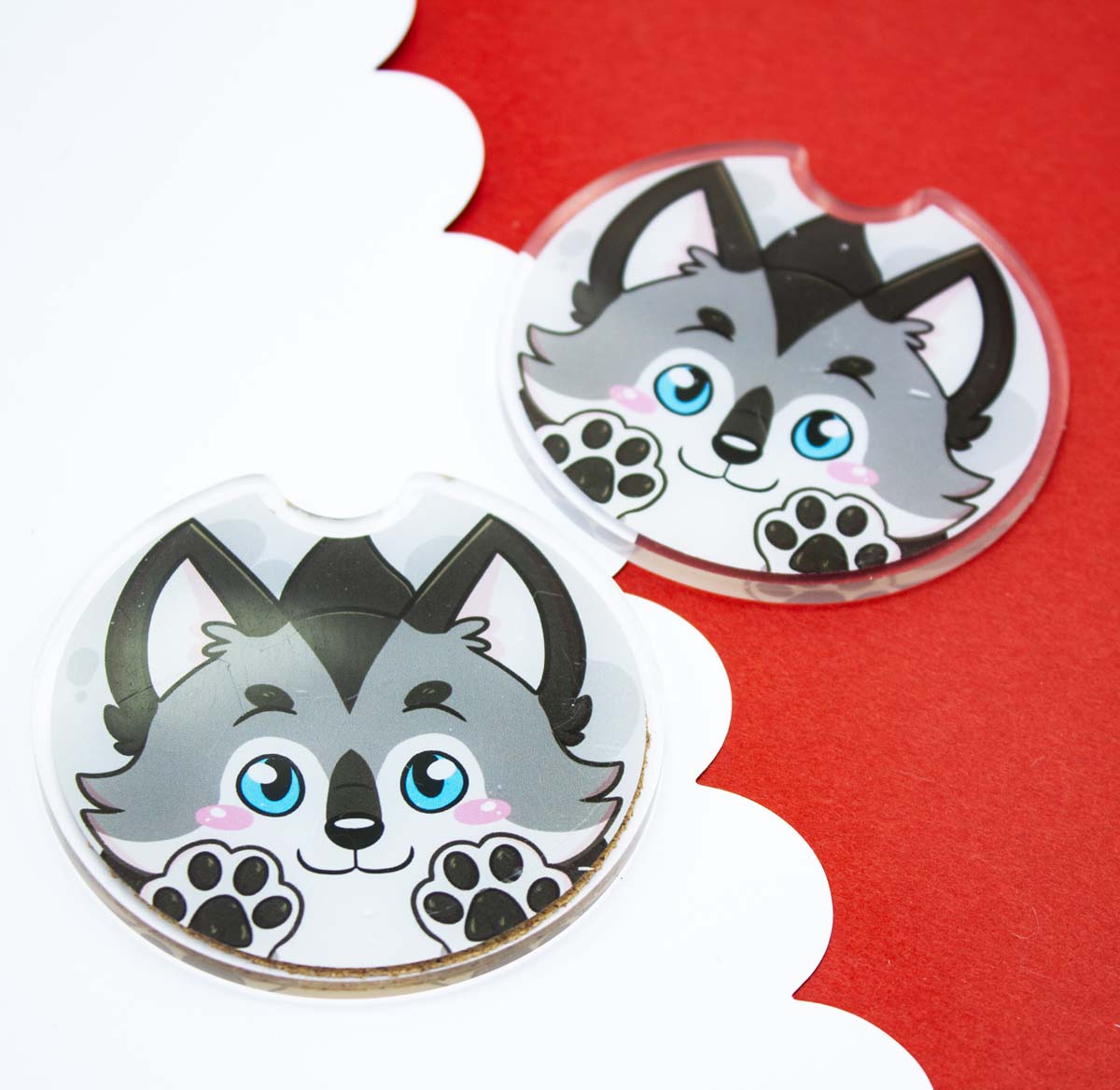 Cute Acrylic Furry Wolf Car Coasters